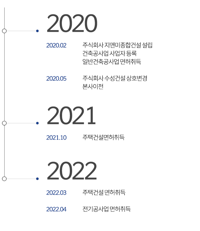 저희 수성건설은 창업이래 내실 있는 성장을 거듭해 왔으며, 그동안의 시공 경험과 축적된 기술력, 품질 최우선의 기업철학으로 고객이 만족하는 최고의 품질을 실현하기 위해 최선의 노력을 다하고 있습니다.